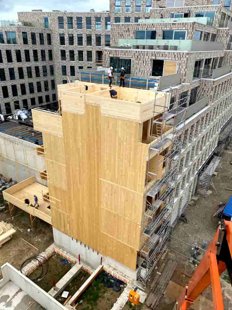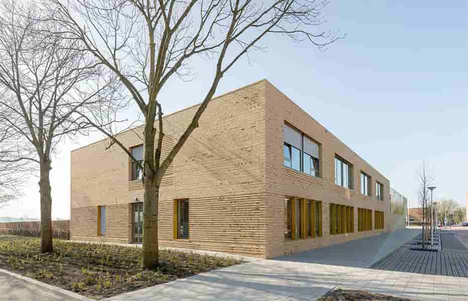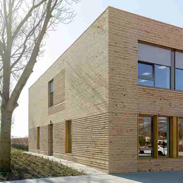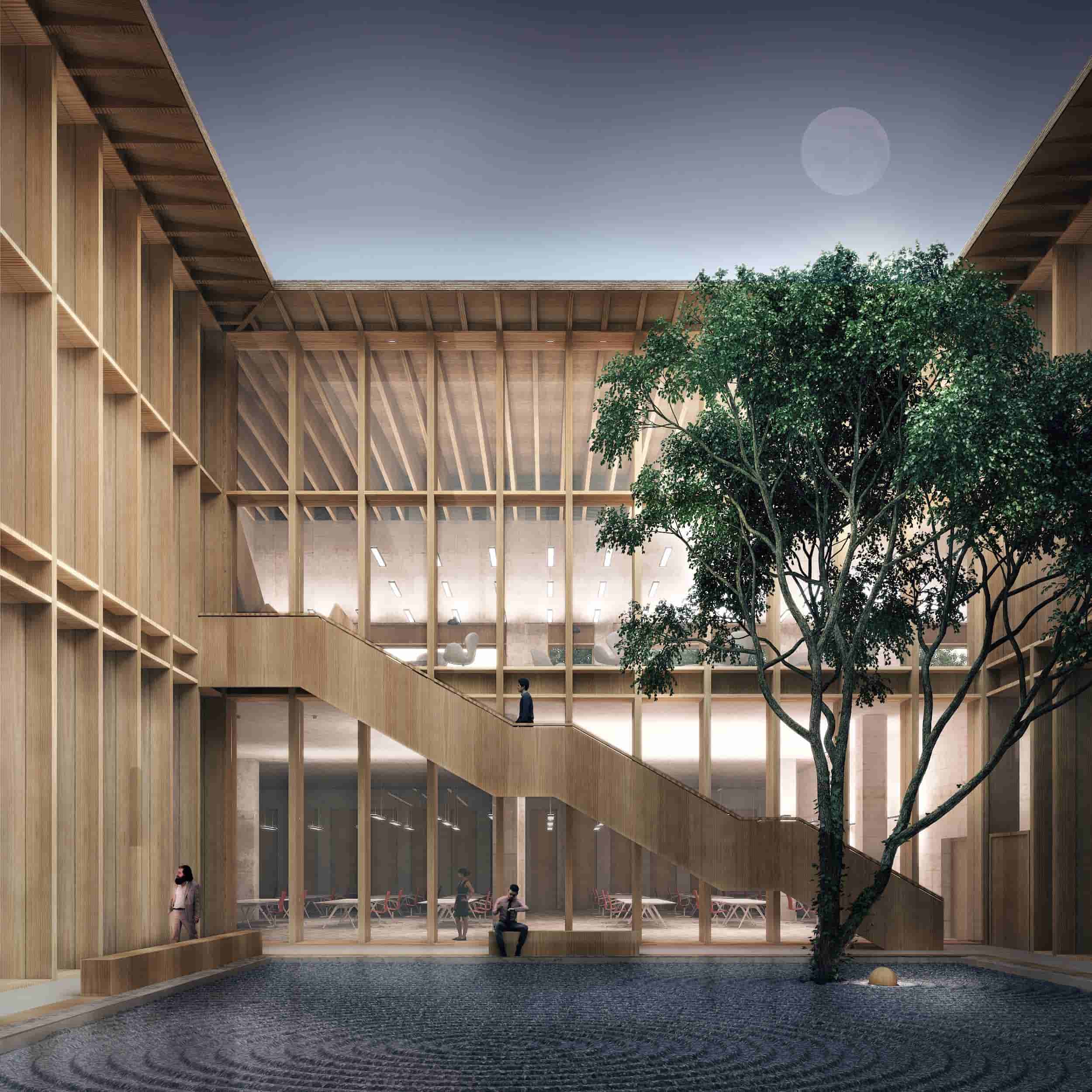 Two other aspects guided the design of the project: a desire to combine centuries-old local building materials such as brick with twenty-first-century sustainable materials through the use of cross- laminated timber (CLT).