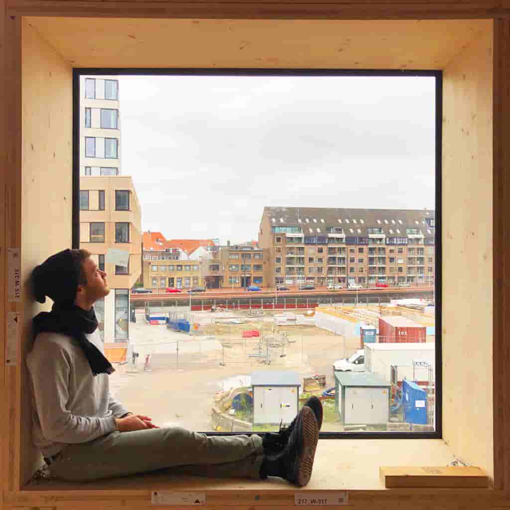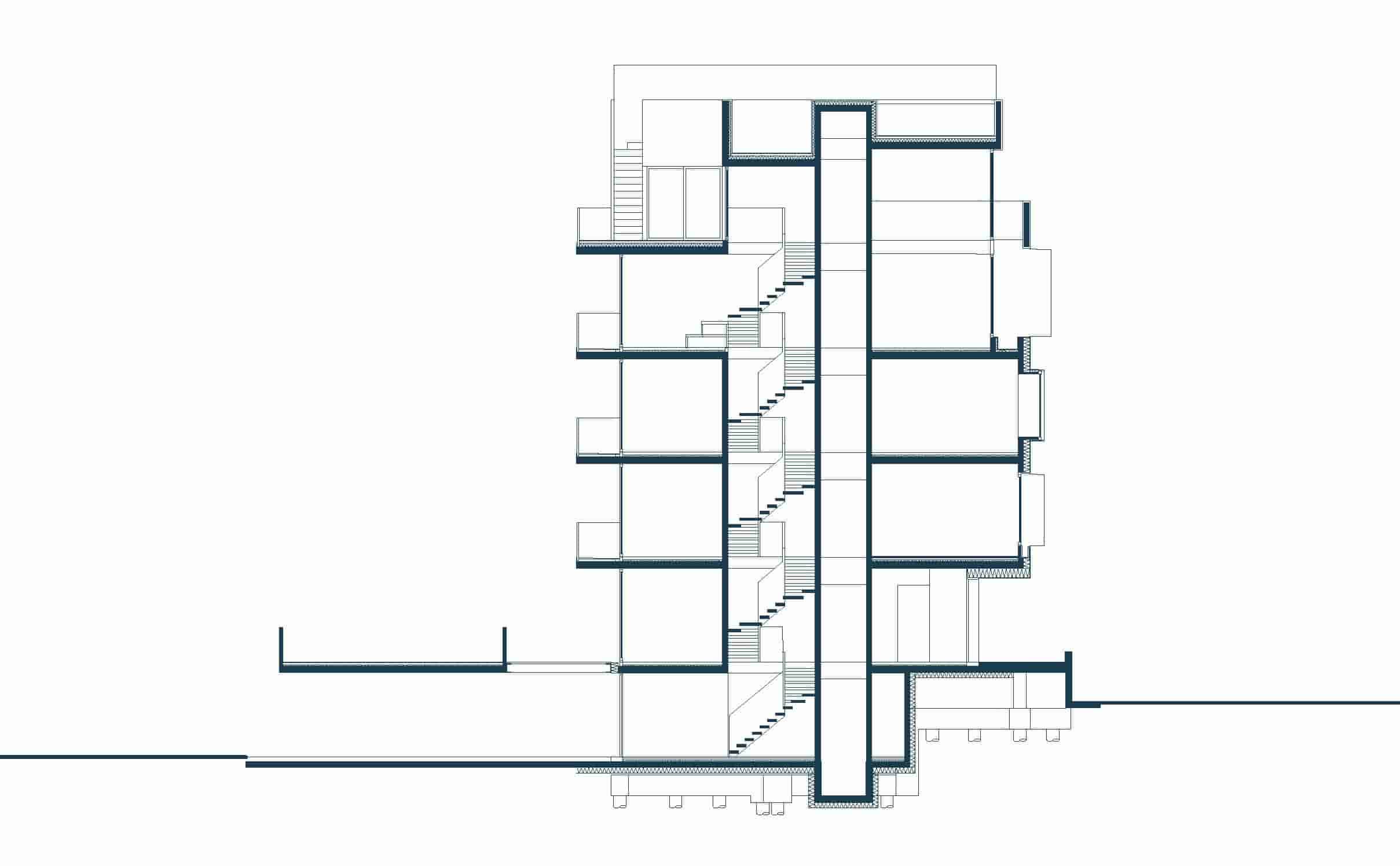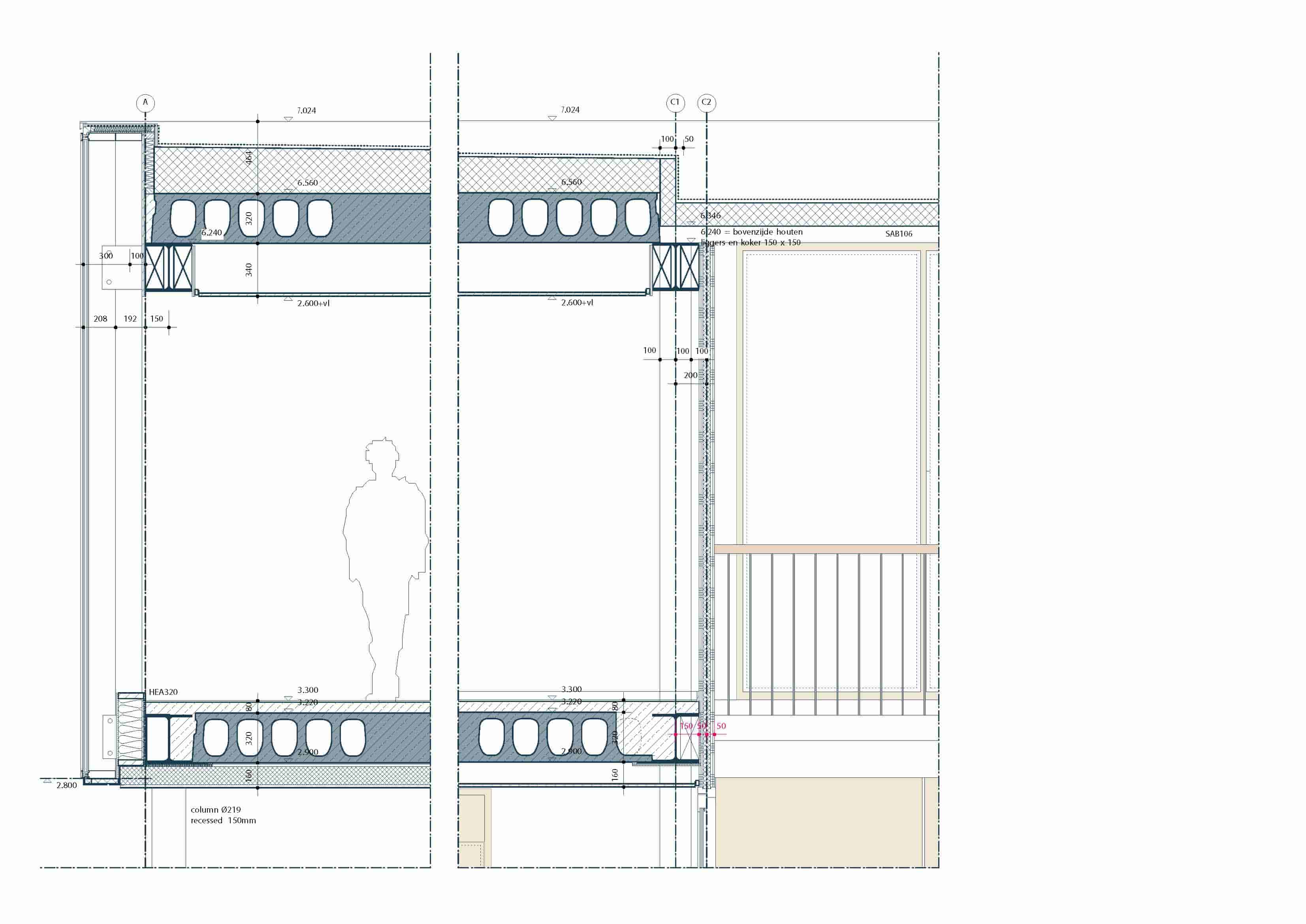 Kavel 09 is a single-family house that is currently under construction as part of a larger mixed-use urban renewal project located in the centre of Delft. To maximise daylight as well as the narrow frontage of the plot, the design takes the formof three successive bays. In this configuration, titlethe central inner bay serves as the service zone accommodating the elevator shaft, stairwell and bathrooms. The two outer bays at either end contain living and sleeping zones with bay windows of various sizes that offer sweeping views of the park and historic city centre of Delft.