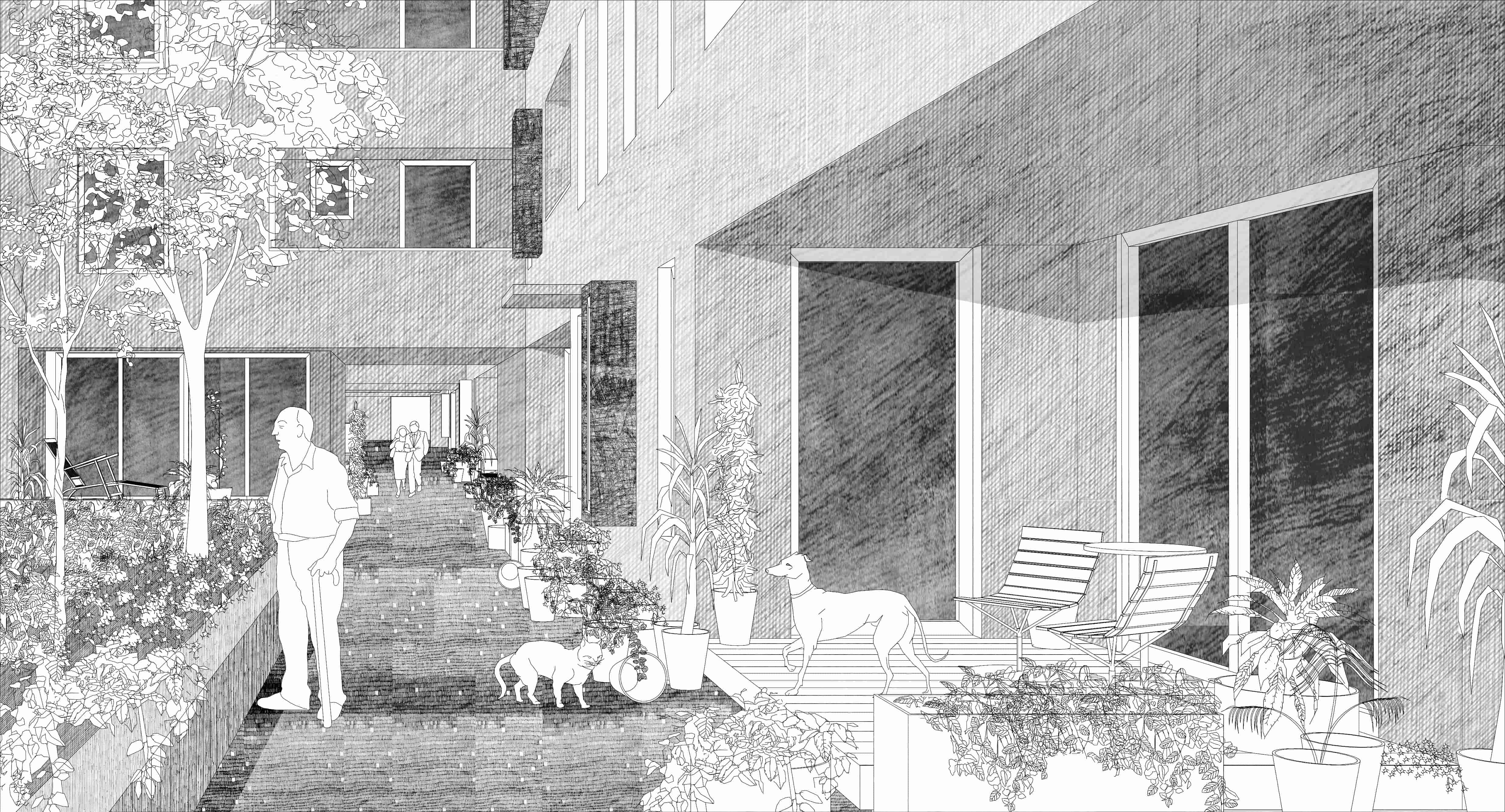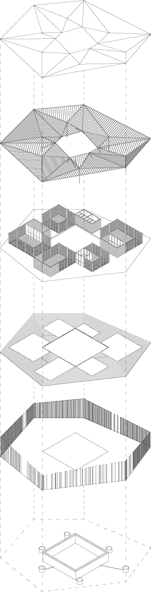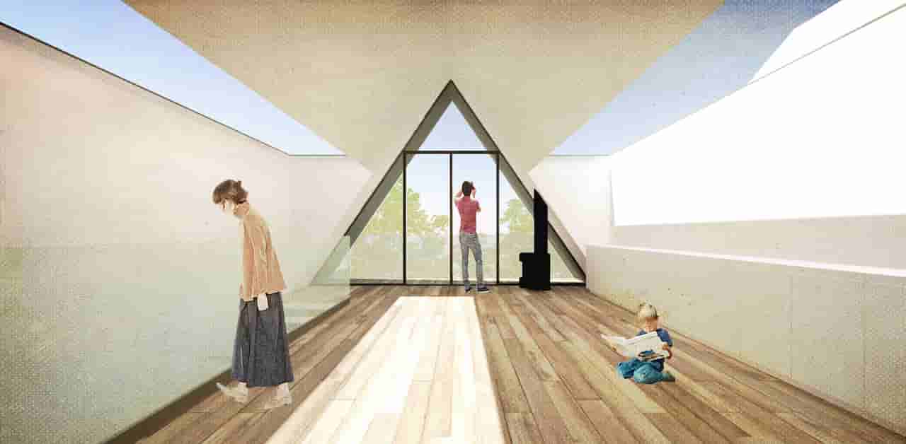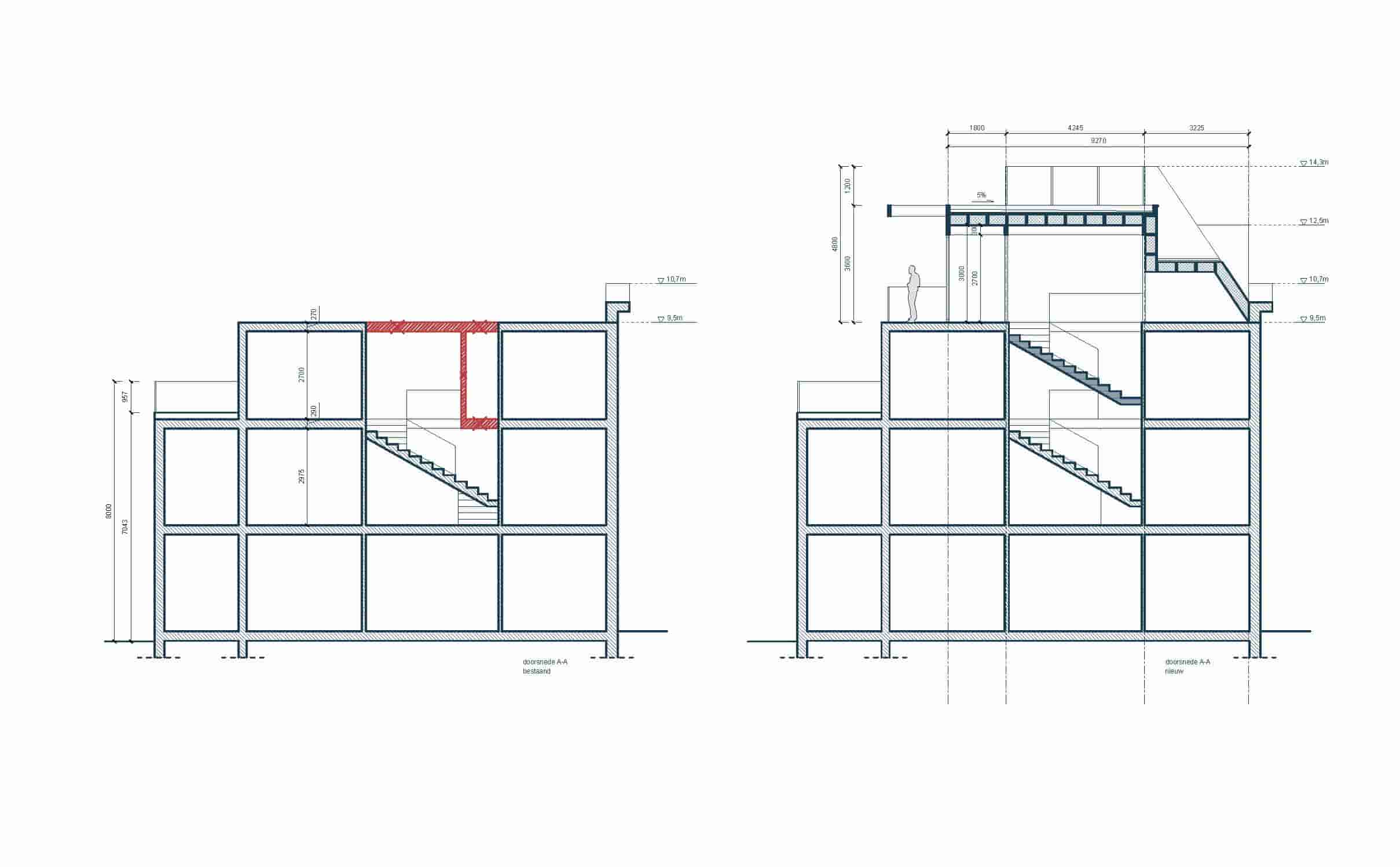 Kavel 09 is a single-family house that is currently under construction as part of a larger mixed-use urban renewal project located in the centre of Delft. To maximise daylight as well as the narrow frontage of the plot, the design takes the formof three successive bays. In this configuration, titlethe central inner bay serves as the service zone accommodating the elevator shaft, stairwell and bathrooms. The two outer bays at either end contain living and sleeping zones with bay windows of various sizes that offer sweeping views of the park and historic city centre of Delft.