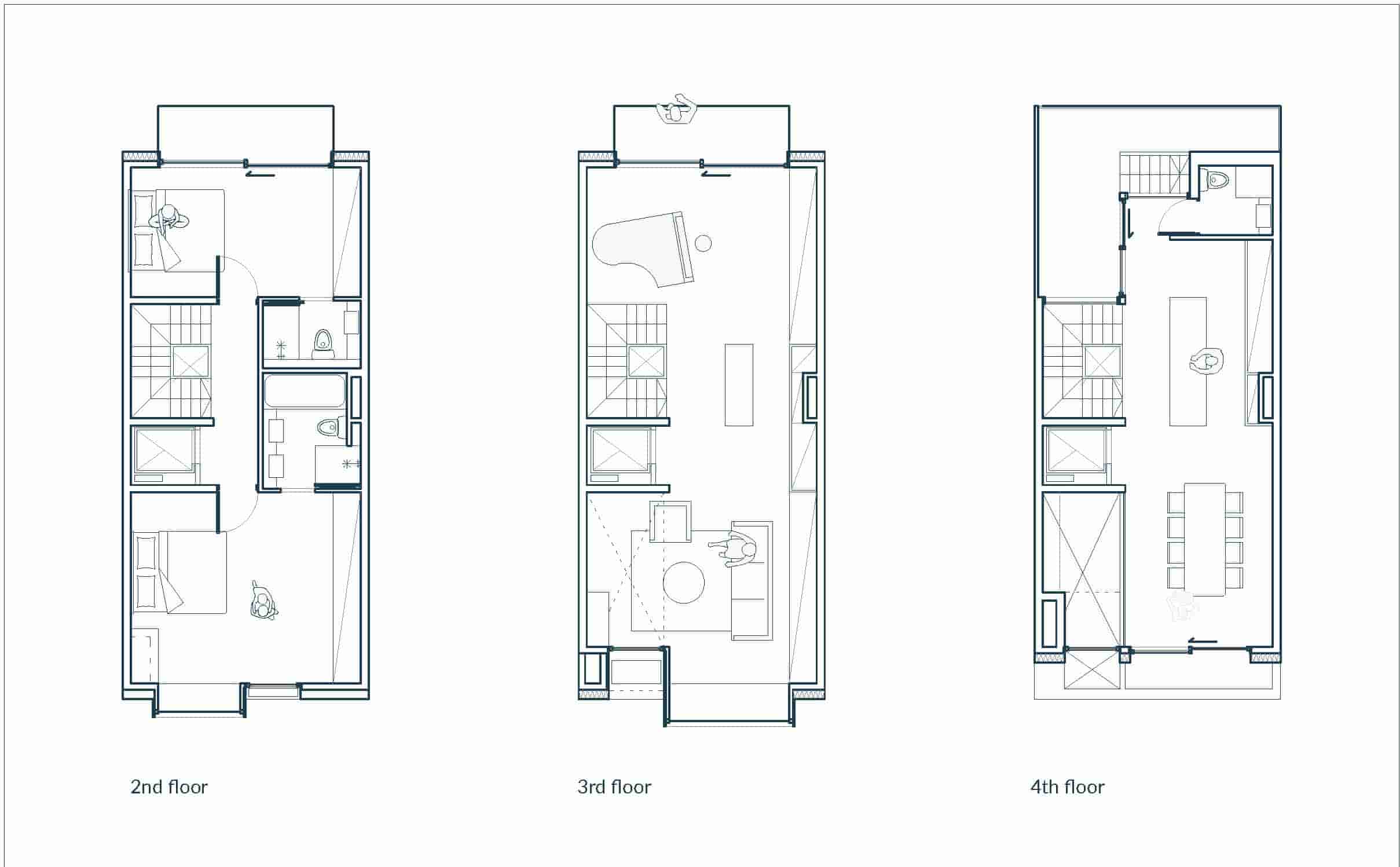Responding to the needs of the client, the house rises six floors with an layout that allows for ample space for a home office on the lower two levels, private studios on the first floor and more private bedrooms and living spaces on the upper three floors. An open-to-sky terrace with a heated swimming pool top the 351 sqm project.